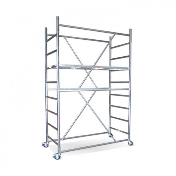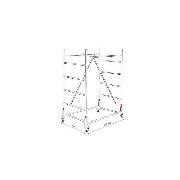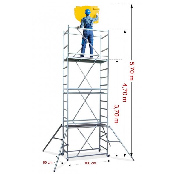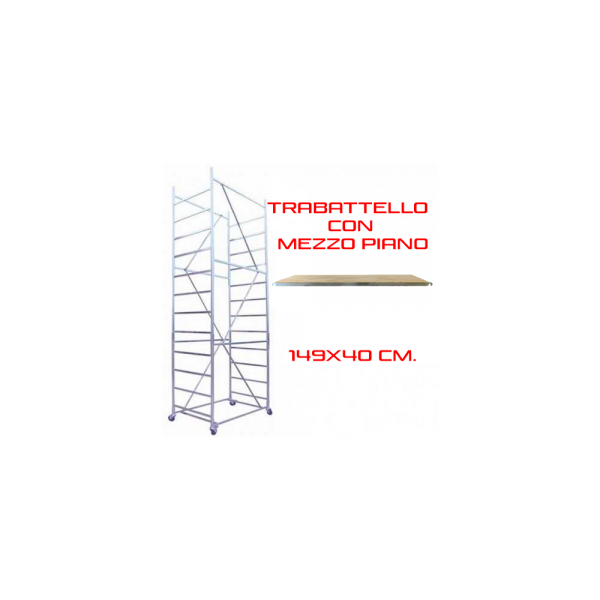 Il trabattello MAXI TRIS COMPRESO DI MEZZO PIANO è adatto per lavori in interno ad uso civili o supermercati e comunque per pavimentazioni a livello dato che non ha la necessita di livellarsi (a differenza del modello plus).