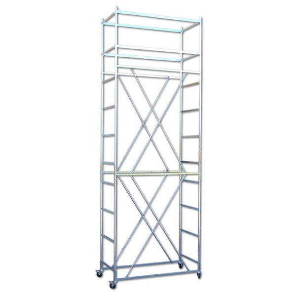 Il trabattello REAL è adatto per tutti coloro che necessitano di lavorare ad altezze non troppo elevate con le opportune sicurezze, completo di mezzopianetto 33x155 cm ma permette l aggiunta di altri accessori di completamentoparticolarmente indicato per lavori in ambienti interni con pavimentazione finita o su pavimenti prevalentemente a livello E’costruito interamente in ferro zincato con montanti da 35 mm. innesti da 40 mm. Dotato di 4 ruote piorettanti da 100 mm in gomma. Il trabattello REAL ha una dimensione di base 165X0,78 cm con un’altezza massima d’ingombro di 4,47 mt. Grazie alla sua dimensioni di larghezza passa in mezzo allle porte senza bisogno di smontarlo